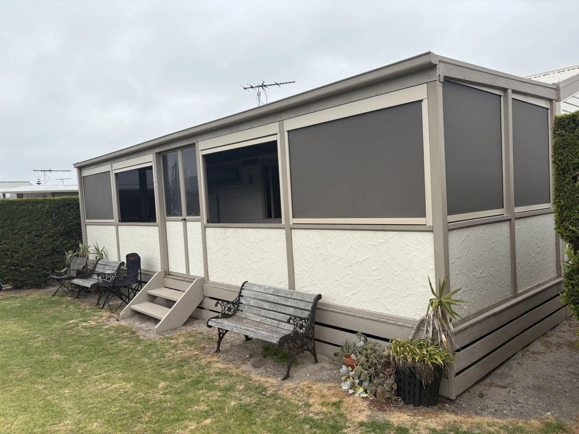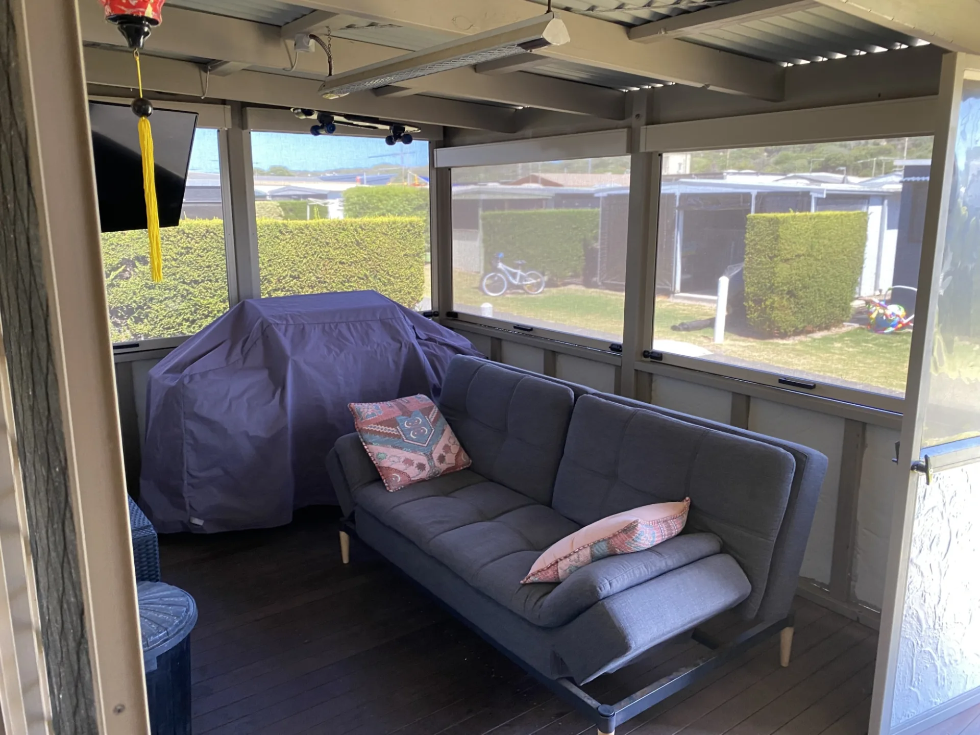 - Large enclosed front verandah = extended living area