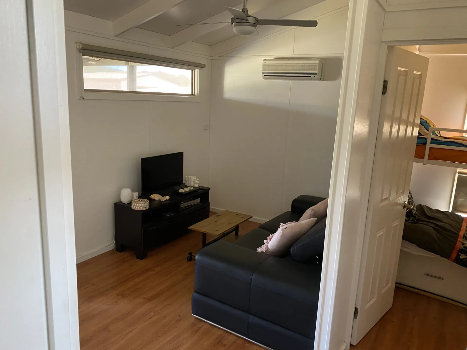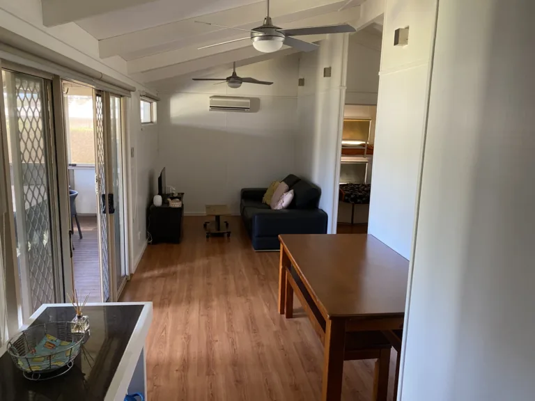 A family-friendly cabin designed for easy coastal getaways and big holiday crews. With 3 bedrooms plus a fold-out sofa, it comfortably sleeps up to 10, making it ideal for weekends away, school holiday stays, and memory-making with the whole tribe. The large enclosed front verandah adds a bonus living zone—perfect for spreading out after a day at the beach.