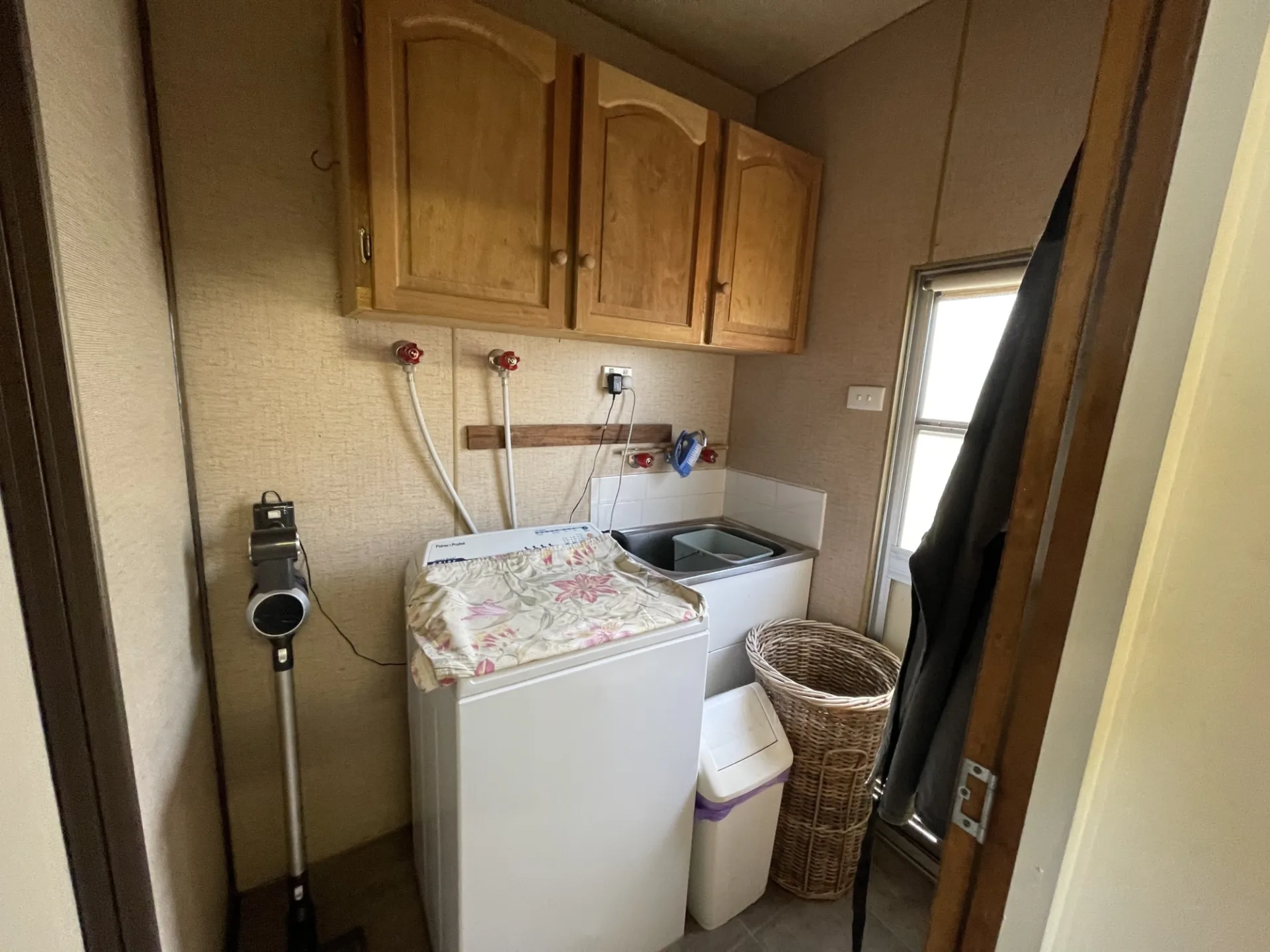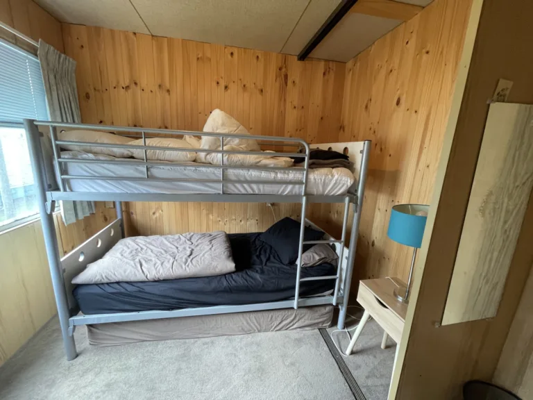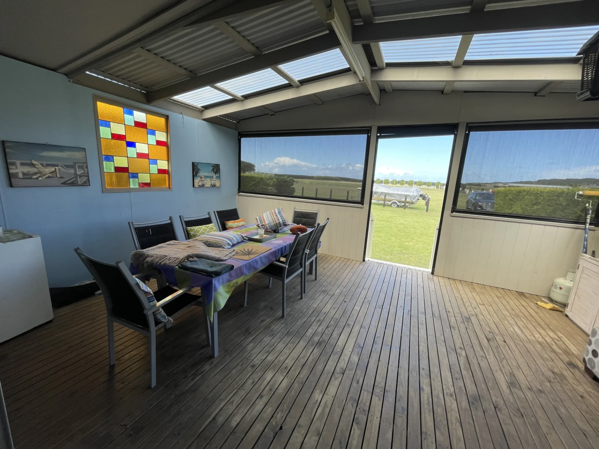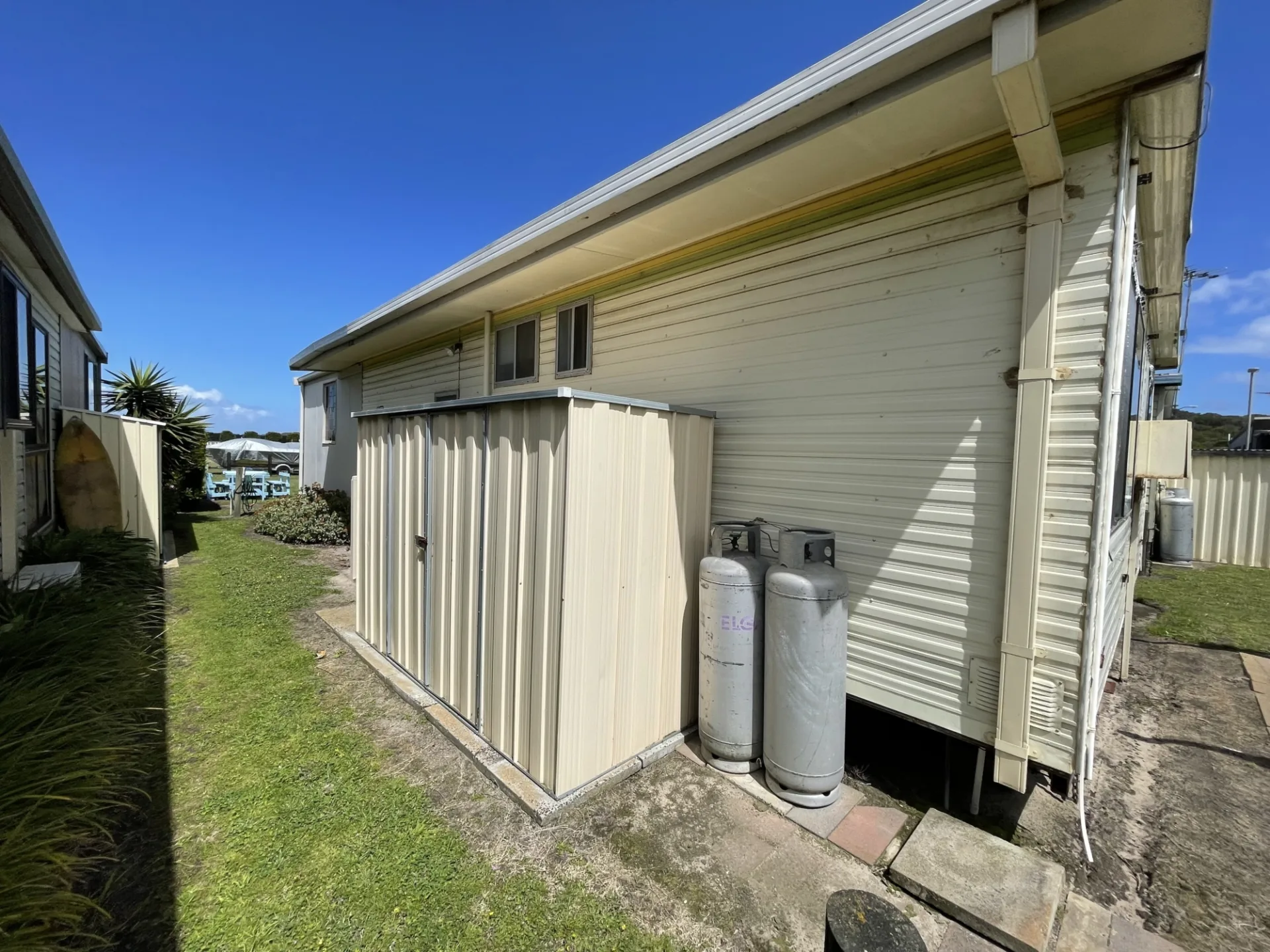 Sitting pretty on a large private site and overlooking a spread of open green space, this 2-bedroom cabin is the kind of find people circle the park hoping to spot. The layout is generous, welcoming, and designed for easy holiday living — combined lounge and dining, separate toilet, full laundry, and a deck that just begs for long afternoons. It’s older-style, sure, but kept in genuinely great condition — the kind that stands the test of time.
