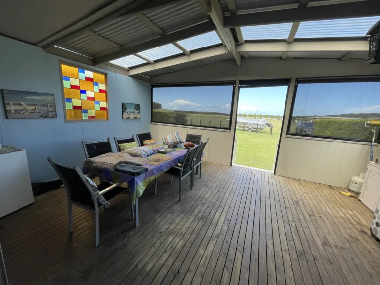 The outdoor deck with privacy blinds gives you extra living space through the warmer months, while the furnished interior means you can walk in and start enjoying it from day one. The quiet position is a real bonus — tucked away but still close to everything that matters, including the car park and those big open stretches of green you don’t often find. Families, holidaymakers, and “weekend escape” types will all love the easy, low-maintenance setup.