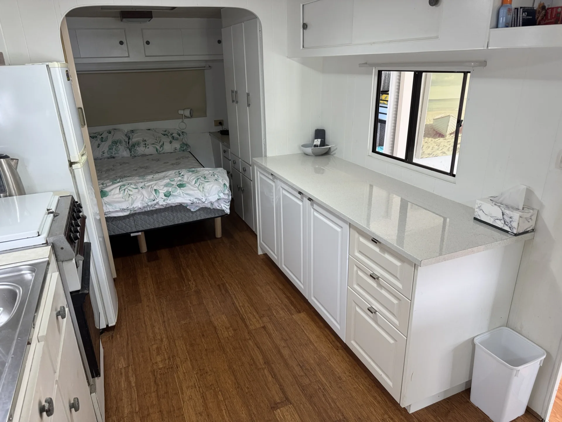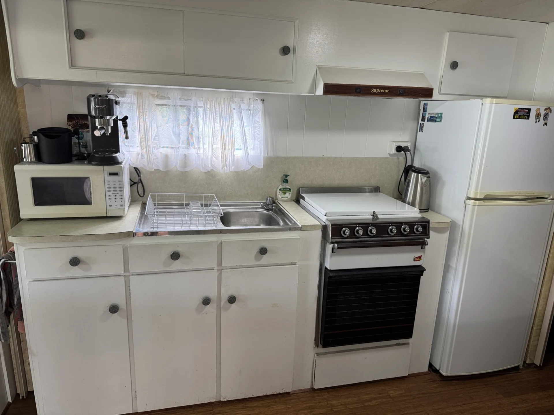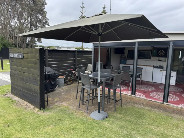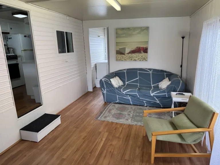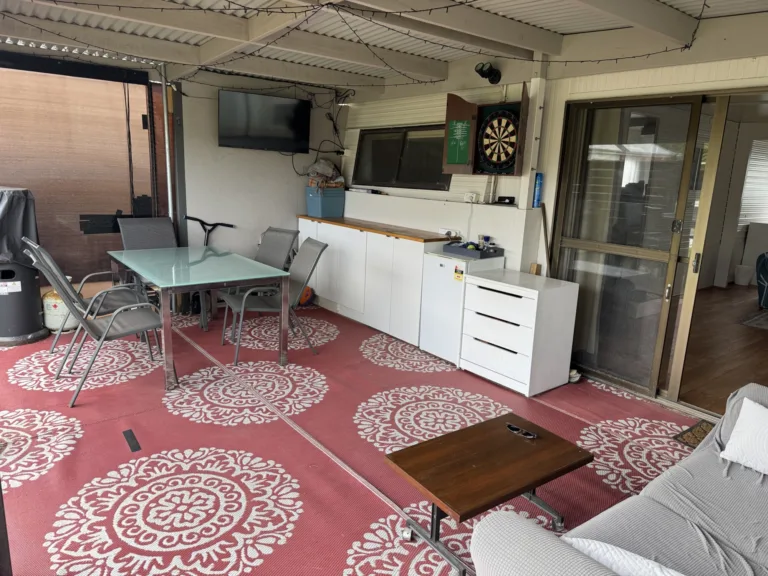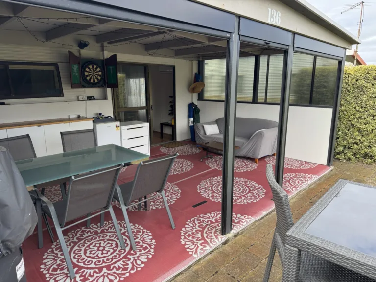 Step outside and you’ve got an enclosed verandah with retractable blinds in great condition — perfect for breezy afternoons or winding down at night. Fire up the BBQ, pop on a snag, and let the holiday mode kick in. The kitchen has had a refresh too, with updated cupboards and benchtop plus it’s fully equipped kitchenette so you’re sorted for easy meals – includes a coffee machine too!.