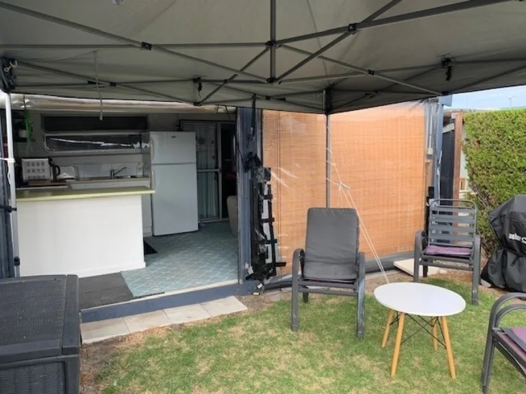 Step outside and enjoy the weatherproof verandah, ideal for year-round use, whether you're cooking, entertaining or simply unwinding. Positioned directly opposite the amenities block, you’ll love the convenience of nearby laundry facilities and accessible bathroom options. The open grassy area and outlook over the AFL field create a relaxed, community feel that’s hard to beat.
