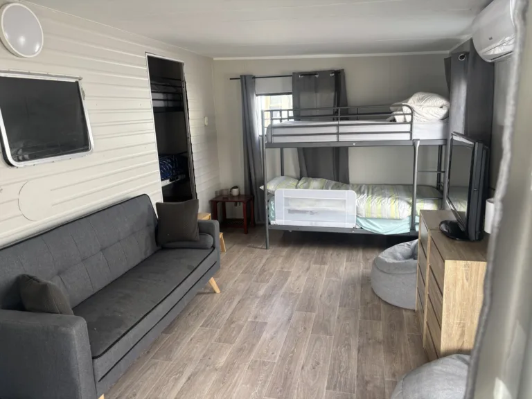 This roomy caravan & annex on Site 181 delivers easy family holidays. With 2 bedrooms, main bedroom with a queen bed and a set of bunks in the other bedroom, while the annex adds another set of bunks and a double futon.