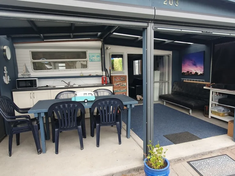 • Outdoor kitchenette/alfresco with zip track blinds — perfect for family meals