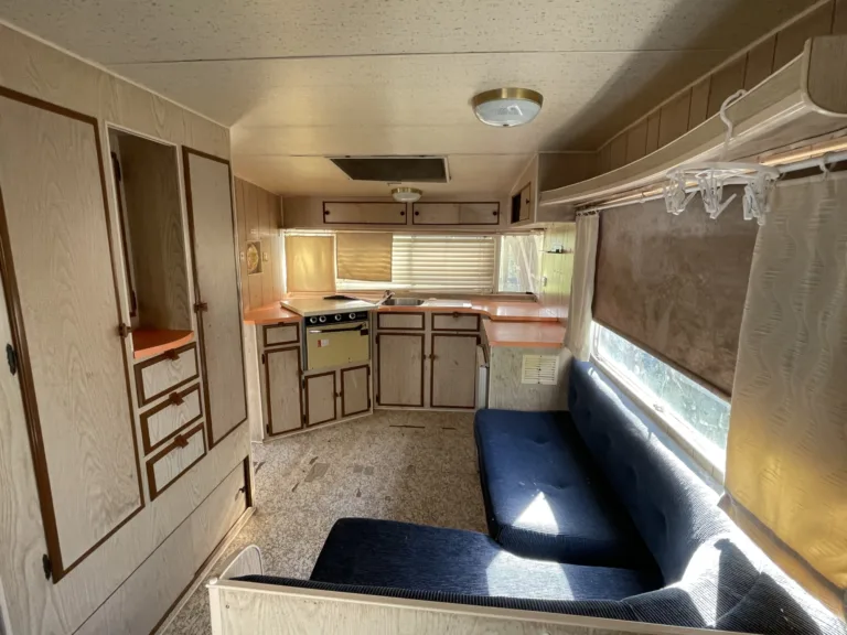 This caravan & annex on Site 233 is packed with potential and perfectly positioned for those ready to roll up their sleeves. With a retro feel and a functional layout, it offers a solid base for a renovation project or an affordable coastal escape. The undercover outdoor area adds extra living space, complete with bench, sink, and storage.